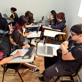 Através da metodologia Geekie One, os anos do ensino médio reúnem conteúdos atualizados e utilizam tecnologia no sistema de ensino.