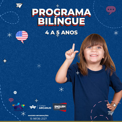 Abra as portas do mundo para seus filhos com nosso programa bilíngue! No contraturno, proporcionamos uma experiência única, preparando mentes curiosas para o sucesso global. Oferecemos uma imersão envolvente no inglês, proporcionando aos alunos um diferencial único. Com atividades lúdicas e educativas, nosso programa não apenas ensina um novo idioma, mas também expande horizontes. No nosso colégio, a diversão é o caminho para a fluência!