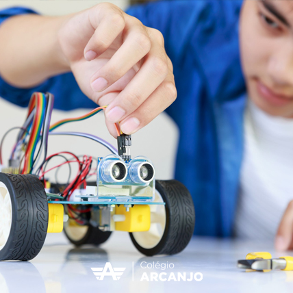 Aqui, a tecnologia é mais do que uma disciplina, é um diferencial transformador. Nossos alunos mergulham em experiências práticas, desenvolvendo habilidades essenciais. Com a robótica como ferramenta educacional, preparamos mentes inovadoras para liderar. No coração do nosso ensino, a tecnologia impulsiona o aprendizado, moldando os visionários de amanhã. O futuro é agora!